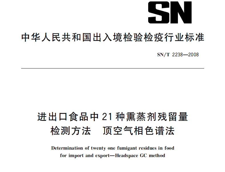 SNT 2238-2008 進出口食品中21種熏蒸劑殘留量檢測方法 頂空氣相色譜法 SNT 2238-2008 進出口食品中21種熏蒸劑殘留量檢測方法 頂空氣相色譜法本標(biāo)準(zhǔn)于2017-... 更新日期:2020-05-09 下載包(1)