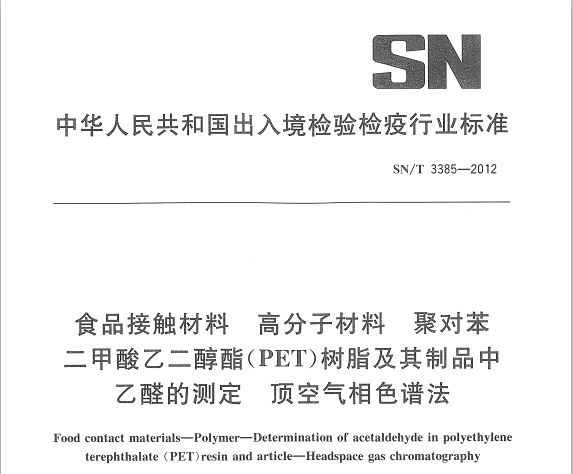 SNT 3385-2012 食品接觸材料 高分子材料 聚對苯二甲酸乙二醇酯(PET)樹脂及其制品中乙醛的測定 頂空氣相色譜法 適用范圍本標(biāo)準(zhǔn)規(guī)定了聚對苯二甲酸乙二醇酯(PET)樹脂及其制品中乙醛的頂空氣相色譜測定方法。本標(biāo)準(zhǔn)適... 更新日期:2020-05-09 下載包(1)