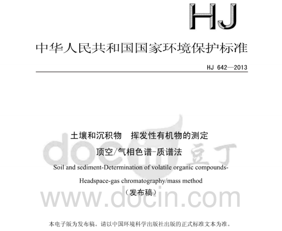 HJ642-2013土壤和沉積物揮發性有機物的測定頂空氣相色譜—質譜法 適用范圍試驗中所使用的內標、替代物和標準溶液為易揮發的有毒化合物,其溶液配制過程應在通風廚中進行操作... 更新日期:2020-05-09 下載包(1)